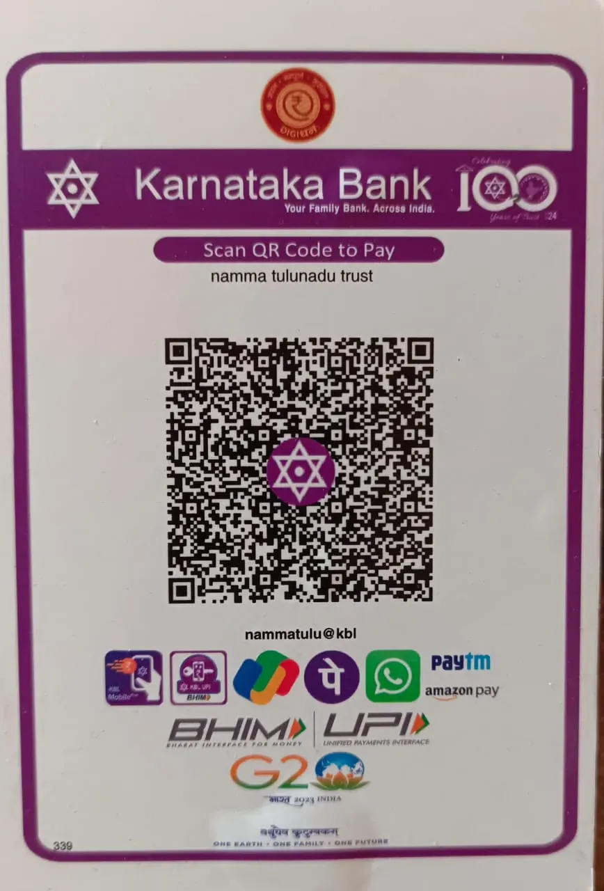 Account Details: Account Name: NAMMA TULUNAD TRUST (R) Bank Name: KARNATAKA BANK Account Number: 7532500102673801 IFSC Code: KARB0000753 IMICR CODE NO: 575052016 UPI ID: nammatulu@kbl